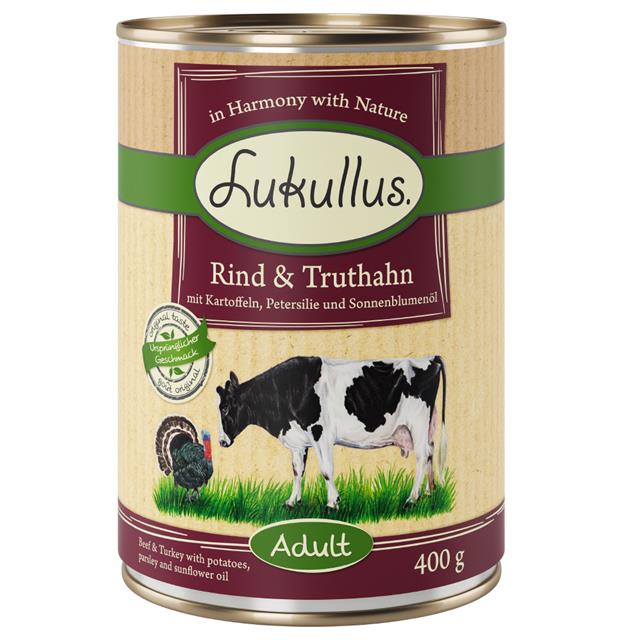Modellnamn: Lukullus Naturkost Adult Grain Free 6 x 400 g - Nötkött & kalkon