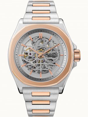 Specifikationer KlockaModell:I09304Tillverkare:IngersollTyp:HerrStil:KlassiskDiameter:44 mmTjocklek:12 mmBoett material:Rostfritt stålBoett färg:Silver, RoséguldBaksida boett:Glas, skruvadArmband material:Rostfritt stålArmband färg:Silver, RoséguldArmband max handledsomkrets:210 mmUrtavla färg:SilverSpänne:FjärilspänneGlas:härdat, mineralglasBezel (ring):FastSpecifikationer UrverkUrverkstyp:Automatisk Vattenskydd ATM:5Funktioner:Minut, timme, sek