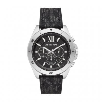 Specifikationer klockaModell: MK8850 Serie: Brecken Typ: HerrklockaDiameter: Ø 45 mmTjocklek: 11 mmBoett: Silverfärgad stålArmband: PVC, svartUrtavla: SvartSpänne: BygelspänneGlas: Mineral, splitterfrittSpecifikationer urverkUrverkstyp: QuartzDatumvisning: JaVattenskydd: 5 ATMÖvrigt: Skruvkrona, kronograf
