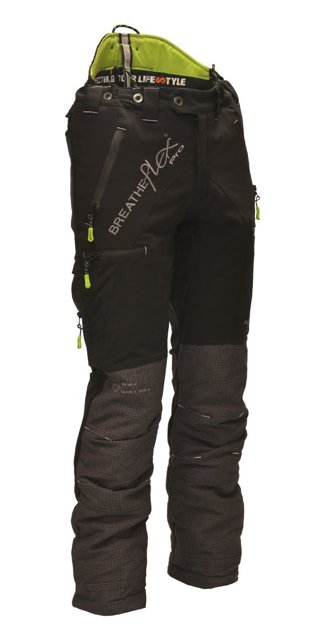 The Breatheflex Pro trousers are also available in Lime and Black.Reinforced seams at high tension areas: Stronger build for longer lasting trousersKevlar reinforcement at lower leg: Resistance to abrasion such as from thorns and brashDownward facing Pocket Zips: Compatibility with wearing a climbing harnessReinforced lining around ankle: Reduces wear from boot lace hooksZipped Cargo and phone pockets: Keeps shavings and dust out.Downward facing Pocket Zips: Compatibility with wearing a climbing harnessElasticated boot lace fastener: Reduces sawdust ingress into bootsAir Vents: Zipped air vent located on the back of the leg, to help reduce the temperature of the trousers while working.Additional leg sizing: The Breatheflex Pro chainsaw trousers are available in Short 29", Regular leg 31" and Tall leg 33".